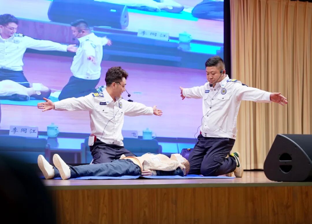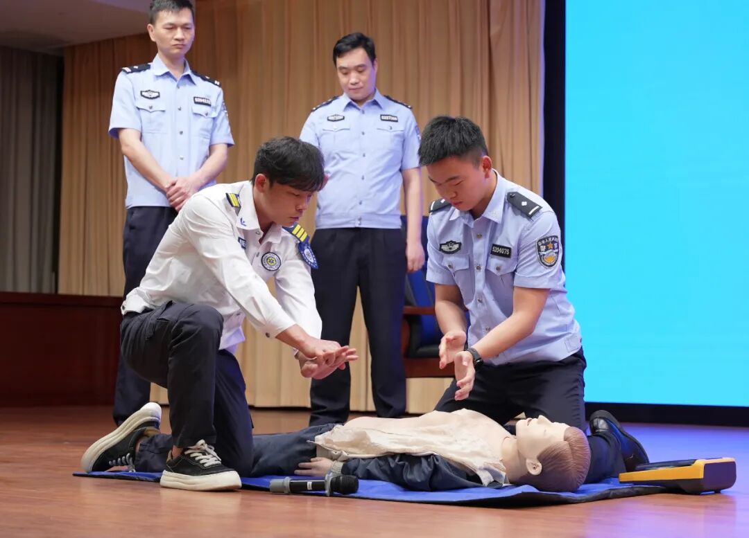 为了让民警能更好地掌握急救技能,培训特别设置了现场演示和实操环节,贵阳市第四人民医院(贵阳市骨科医院)急诊科医护团队利用人体模型,详细讲解心肺复苏的操作步骤和细节,就按压位置、力度和人工呼吸关键技巧等不易掌握的操作要点进行了示范,参训民警认真学习、积极参与,纷纷上前进行实操练习。培训结束后,参加培训的民警表示,参加急救知识和技能培训,不仅学到了急救技能,更增强了守护生命“救”在身边的意识。