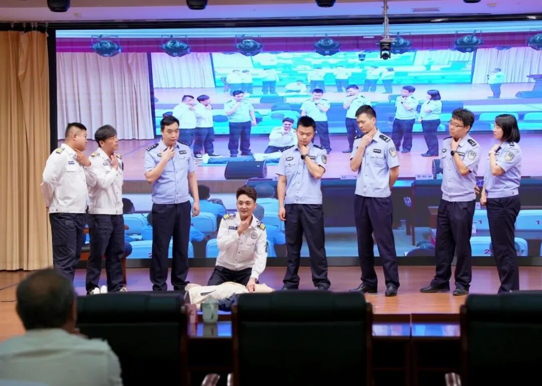 为进一步普及急救知识和急救技能,提升监狱民警职工面对突发疾病和意外情况时的紧急救治能力,最大限度保障生命安全。6月10日下午,贵阳市第四人民医院(贵阳市骨科医院)急诊科医护团队走进贵州省监狱管理局机关,为监狱民警开展自救互救与急救知识技能培训讲座,共计100余名监狱干警参加培训。