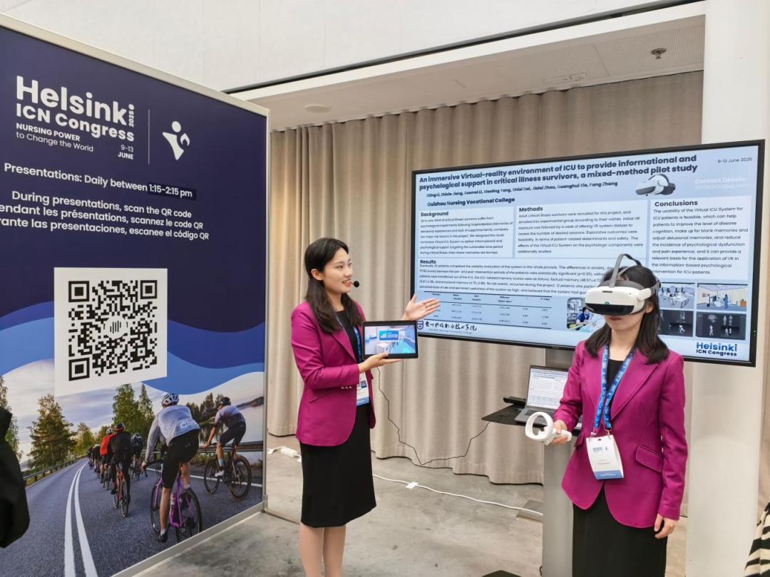本次大会收录了以贵州护理职业技术学院李丝静为第一作者,李雪梅为共同作者的论文《An immersive Virtual-reality environment of ICU to provide informational and psychological support in critical illness survivors, a mixed-method pilot study 》。该研究主要针对ICU机械通气患者这一特殊人群,在充分了解其需求的基础上,结合我国重症监护病房的实际情况,利用VR技术开发的一套基于信息支持和情感支持的ICU患者互动式健康教育和情感支持系统,旨在为患者提供系统化、阶梯化、个性化的信息支持和情感支持,进一步提升患者就医体验,帮助患者提高疾病认知水平,降低疾病不确定感,缓解负性情绪进而提高生活质量。该团队深耕危重症患者ICU后综合征研究领域数十载,在国内外权威期刊发表系列高水平论文,研究成果被多次引用,已成为我国ICU后综合征研究的领军团队。