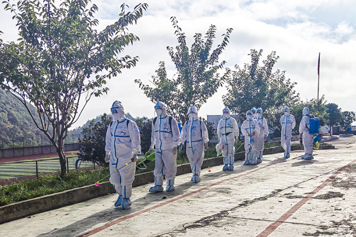 和谢宗文一起组成消毒队伍的,还有赫章县疾控中心、赫章县卫生健康局和赫章县卫生健康综合行政执法大队的其他同志共10人,谢宗文任消毒队队长。