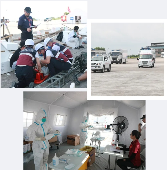 遵医附院党委行政高度重视此次演练,接到省卫健委通知后,迅速启动响应,由院办统筹协调,宣传部、后勤处、急诊科、ICU、胸外科、骨科、耳鼻喉科、影像科、麻醉科、手术室等多部门联动,49名骨干迅速集结;手术车、医技车、药械车、指挥车、生活保障车、通讯指挥车等11辆特种车辆及全套野战装备完成检修、加油、装车。