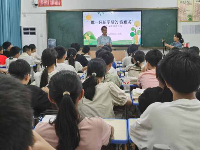 活动伊始,来自榕江县人民医院的资深心理咨询专家贾禾老师以生动有趣的互动游戏开场,迅速拉近与同学们的距离,营造出轻松活跃的氛围。在心理健康知识讲解环节,贾禾老师针对开学季学生易出现的焦虑、紧张等情绪问题,结合真实案例,深入剖析背后的心理成因。从学习压力的来源、理解青春期、到如何应对人际关系的变化,贾禾老师都给出了详细的建议和实用的方法,如通过运动、向同学家人倾诉等方式缓解压力,运用积极的自我暗示增强自信心。同学们聚精会神,不时点头表示认同,还踊跃提问,现场互动热烈。