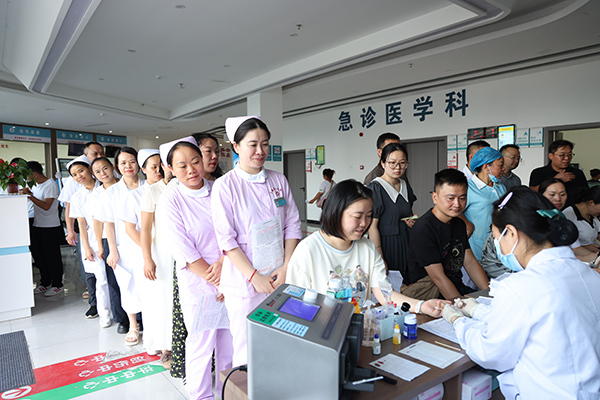 参与献血的队伍中,有刚下夜班的医生、护士,有利用手术间隙赶来献血的值班人员,也有特意从家中赶来的医护家属和后勤工作人员……