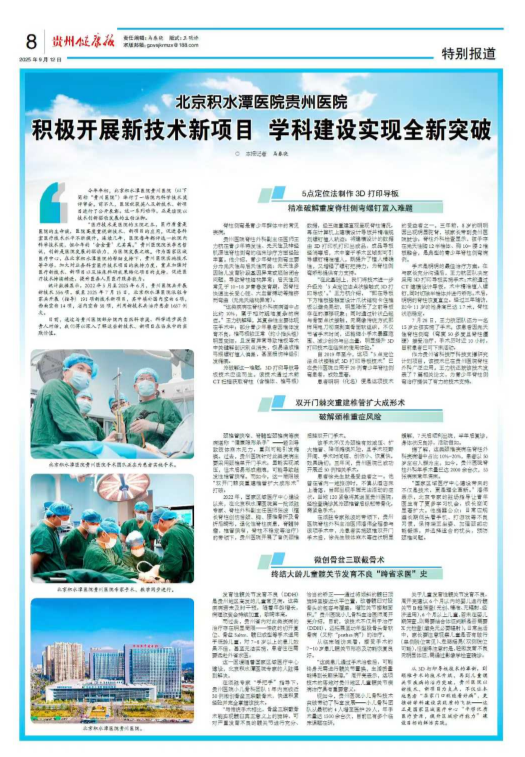 北京积水潭医院贵州医院:积极开展新技术新项目 学科建设实现全新突破
