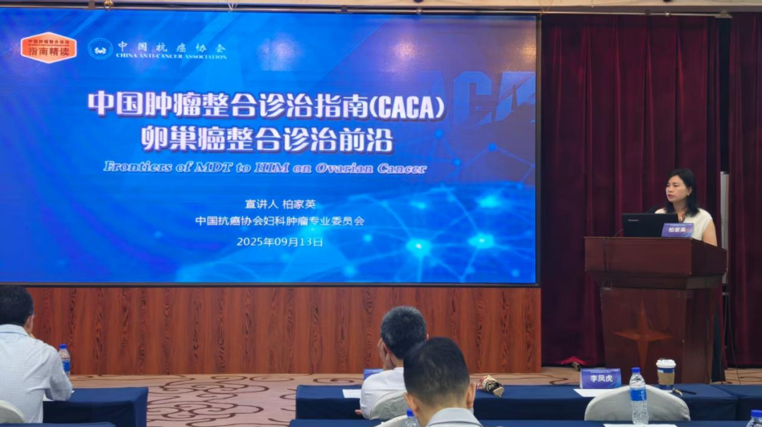 贵州医科大学附属肿瘤医院妇瘤外科柏家英副主任作了“中国肿瘤整合治疗指南(CACA)——卵巢癌整合诊治前沿”专题讲座。她强调卵巢癌是妇科恶性肿瘤之王,起病隐匿,发现多为晚期,卵巢癌的规范诊疗与否与其生存预后有密切关系。在卵巢癌的治疗上,目前省内的诊疗行为亟待规范。她按照中国抗癌协会卵巢癌专委会要求,对卵巢癌的规范诊疗前沿进行宣讲,从初次治疗的规范选择、新辅助化疗的药物选择及化疗周期、手术治疗的规范、基因检测及维持治疗等方面进行详细讲解。
