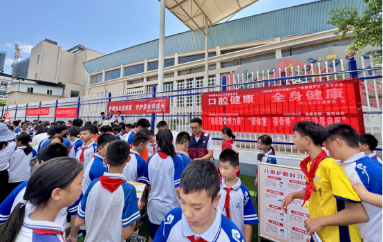 活动中,医护人员围绕“第37个全国爱牙日”“三减三健”等主题进行健康宣教。对学生普及口腔健康知识和口腔保健技能,倡导合理用牙、科学护牙、全面进行口腔护理的观念,改变重口味饮食习惯,强化家长减糖意识,让孩子从小懂得科学食用糖。打造家庭合理膳食、科学健身等健康支持性环境,倡导“强肌健骨增力量”“管体重、强骨骼”“运动是良医”的理念,将体重管理作为家庭生活新理念,注重“三知一管”,推动家庭配备“一秤一尺一日历”,倡导家庭成员养成定期称体重、测腰围等行为习惯,加强引导家庭成员之间的相互提示,充分发挥健康体重的家庭管理优势,降低家庭聚集性肥胖风险。现场氛围活跃,医护人员提问,学生们回答,答对的获礼品奖励。