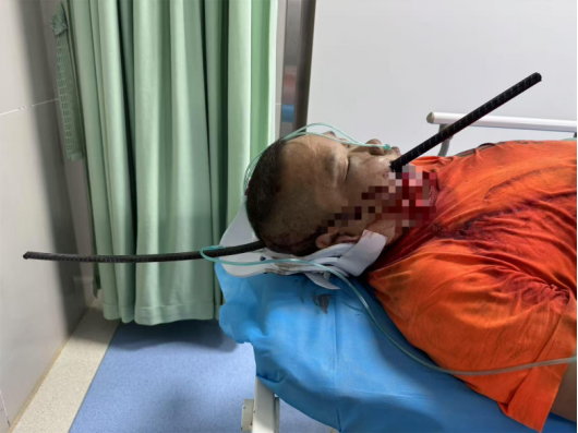 7月19日,遵医附院神经外科一病区接诊一名 47 岁男性颅脑贯通伤患者,患者在工地作业时意外受伤,一根直径约 2cm、总长度约 140cm 的金属异物自面部经颅内向右侧枕部贯通,神经外科团队第一时间启动急重症救治流程,紧急联系消防部门协助将异物穿通部分切短,避免金属异物枕部穿通段过长影响检查操作,优先完善头颅 CT 检查明确伤情,为后续诊断争取时间。此类颅脑贯通伤患者的核心风险在于异物贯穿路径复杂,可能损伤颅内血管、神经,术中出血控制难度大,且脑内活动性出血若不及时清除,可能引发脑疝,危及生命,手术需同期完成异物取出、血肿清除、止血及硬脑膜修补等关键操作。深夜,神经外科值班团队吴海涛主任医师及柯代波博士联合麻醉科、手术室护理团队紧急为患者开展急诊手术……