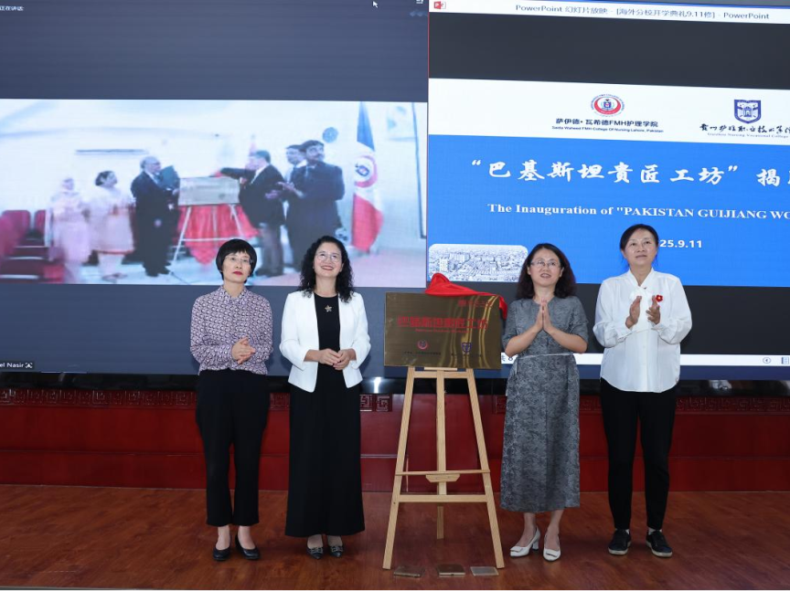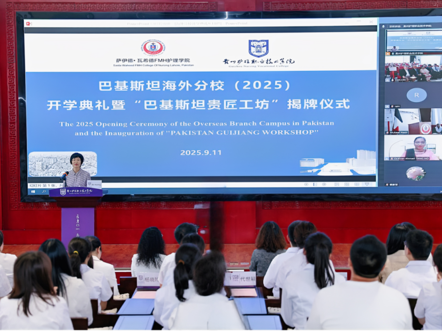 9月11日,贵州护理职业技术学院与巴基斯坦Saida Waheed FMH College Of Nursing Lahore通过云端连线,共同举行巴基斯坦海外分校(2025)开学典礼暨“巴基斯坦贵匠工坊”揭牌仪式。此次活动是双方合作深度与广度的又一次飞跃,标志着两校护理教育合作迈入全新阶段、踏上更高平台。