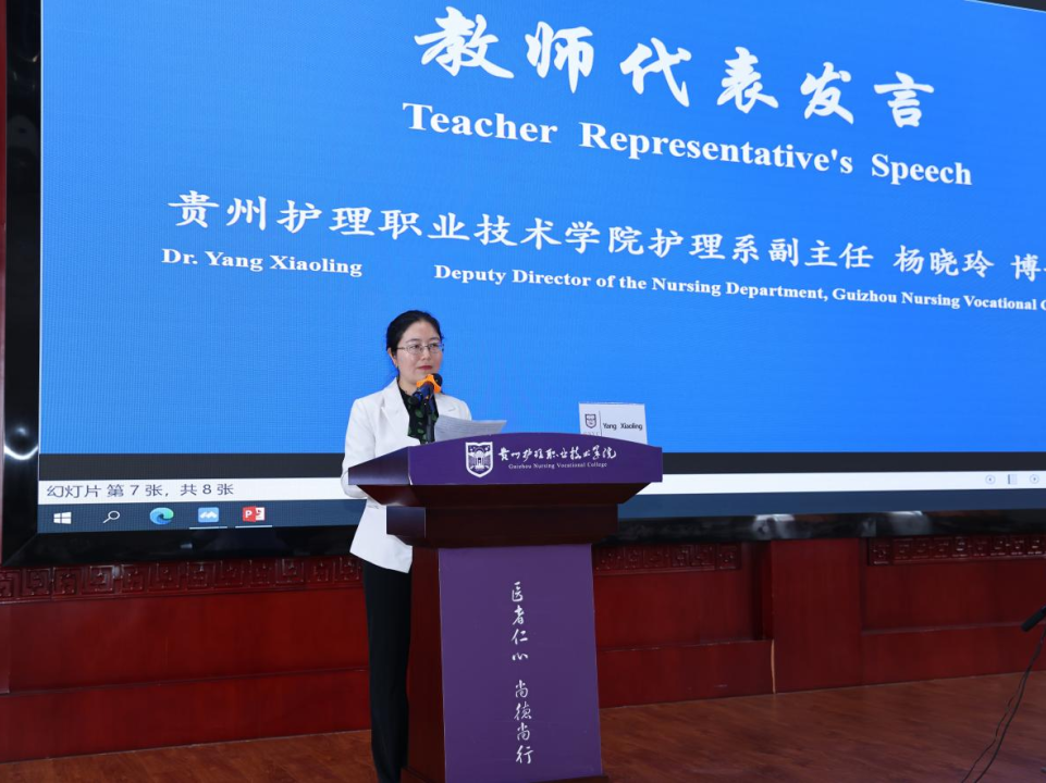 活动现场,两校师生代表的发言情真意切,彰显合作的人文温度。巴基斯坦Saida Waheed FMH College Of Nursing Lahore学生代表Rubina Anayat表示:“在了解中国护理教育的先进理念与实践成果后,我很渴望来到中国,学习前沿的护理技术、感受博大精深的中国文化”。贵州护理职业技术学院教师代表杨晓玲则提到:“我们将组建优秀的师资队伍,把中国护理领域的前沿知识、临床经验毫无保留地传授给巴基斯坦学生,探索更适合两国护理人才培养的模式”。本次活动由党委委员、副院长柏晓玲主持。