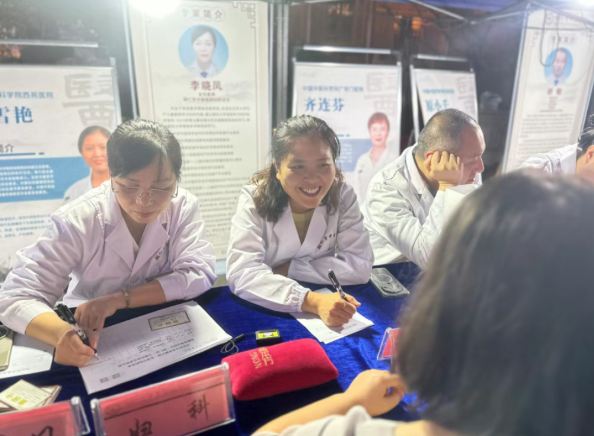 从散发着艾叶、薄荷、白芷香气的中药香囊、草本书签,到黄精、天麻、淫羊藿等铜仁道地药材熬制的养生饮品;从刮痧、耳穴压豆、推拿等常见中医适宜技术,到“田氏灯火疗法”“苗医药十方脉法”等有贵州特色的省级非物质文化遗产……10月17日,在中医药文化传播行动•走进中医药传承创新发展试验区(贵州站)主题活动现场,市民们不仅体验了多种中医适宜技术和康养产品,还通过北京专家的义诊明确病因、调理体质,将健康的生活观念“带回家”。