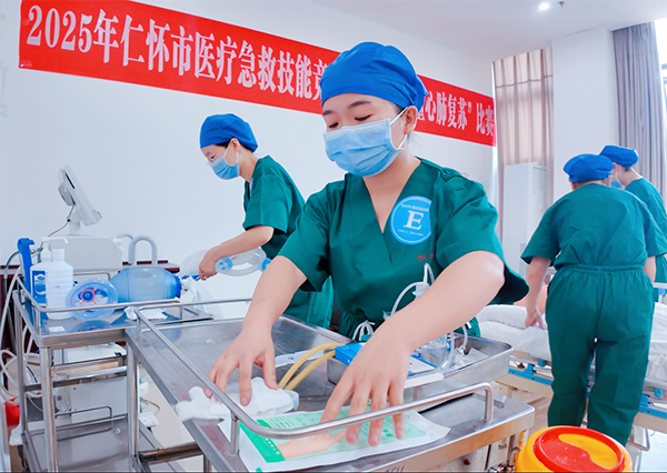 竞赛现场,选手们在模拟场景下展开激烈角逐,其规范的操作和娴熟的技能,充分展现了仁怀市院前急救队伍的专业水准与应急能力。