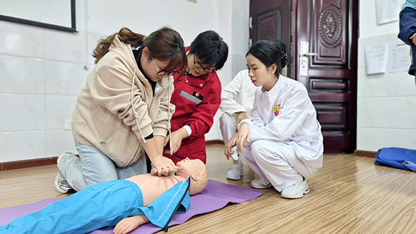同时,医护志愿者利用模拟人偶开展实操教学,邀请师生参与模拟演练,并逐一纠正动作细节。教师们纷纷表示,讲座内容实用性强,既掌握了急救技能,也深化了对幼儿安全教育的认知。