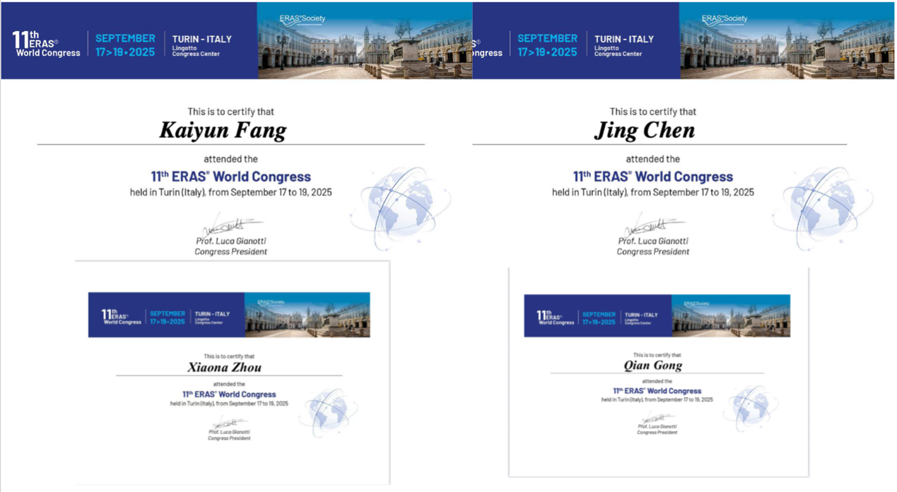 2025年9月17日至19日,第十一届国际加速康复外科(ERAS®)大会在意大利都灵Lingotto会议中心召开。作为全球ERAS领域最具权威性与影响力的学术盛会,本次大会吸引了来自全球100余个国家和地区的数百名外科、麻醉、护理、营养、康复医学等多领域专家学者齐聚一堂,共ERAS发展新未来。