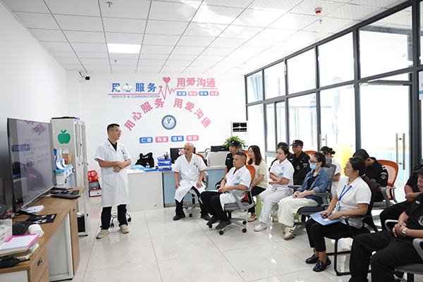 他面向全科医护人员、保安、保洁,系统讲授了《噎食的处理与防范》《精神科病房安全管理》《精神科暴力防范技巧》等核心内容,确保每一位成员,在面对突发情况时沉着应对、有效处置。