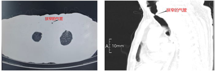 55岁的王先生因“活动后气短半月,加重2天”被紧急送入遵义市第一人民医院呼吸重症监护室(RICU)。急诊胸部CT结果显示:气道出现严重狭窄,最窄处仅为3.5毫米,气管几乎完全堵塞。此时患者已呼吸急促、神志不清,血气分析提示存在“呼吸性酸中毒和急性Ⅱ型呼吸衰竭”,生命悬于一线。