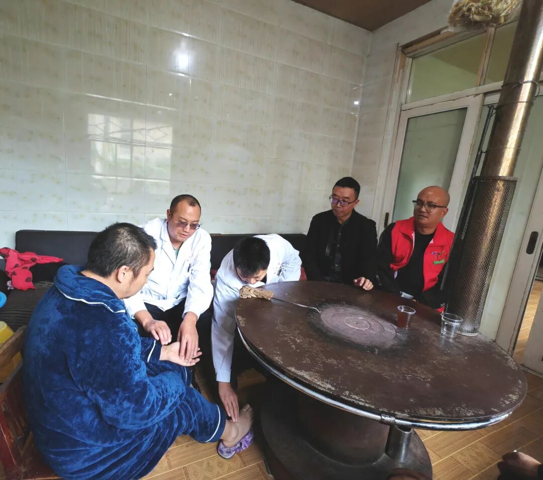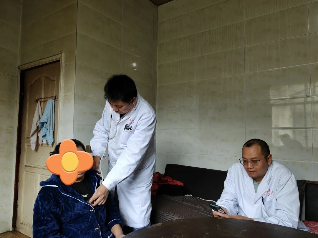 在村“两委”与驻村工作队的全程协同下,专家团队携带专业设备深入王飞家中,细致询问病情发展及用药情况,开展心肺听诊、症状评估等检查,并结合既往病历优化治疗方案,明确后续检查项目、用药调整及康复护理要点。专家们还耐心解答了患者及家属关于治疗时机、术后恢复及并发症预防等问题,有效纾解了群众“看病难、看病贵”的焦虑。村委会工作人员积极搭建沟通桥梁,确保诊疗建议准确传达,切实减轻患者家庭负担。