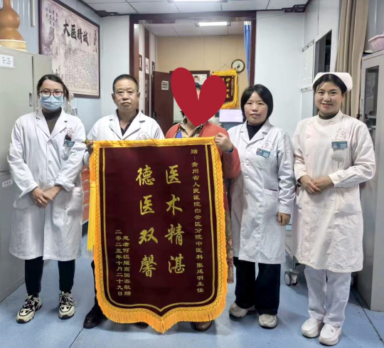 “没想到我这老毛病能好得这么彻底,不用拐杖也能稳稳走路了!”近日,贵阳市白云区人民医院中医科诊室里,七旬老人高阿姨将两面烫金锦旗郑重递到医护人员手中,脸上的笑容舒展又真切。锦旗上“医术精湛 德医双馨”“视病人如亲人 良好医风医德”的字句,是她对中医科团队最诚挚的谢意,更是中医药特色疗法与人文关怀融合的生动体现。