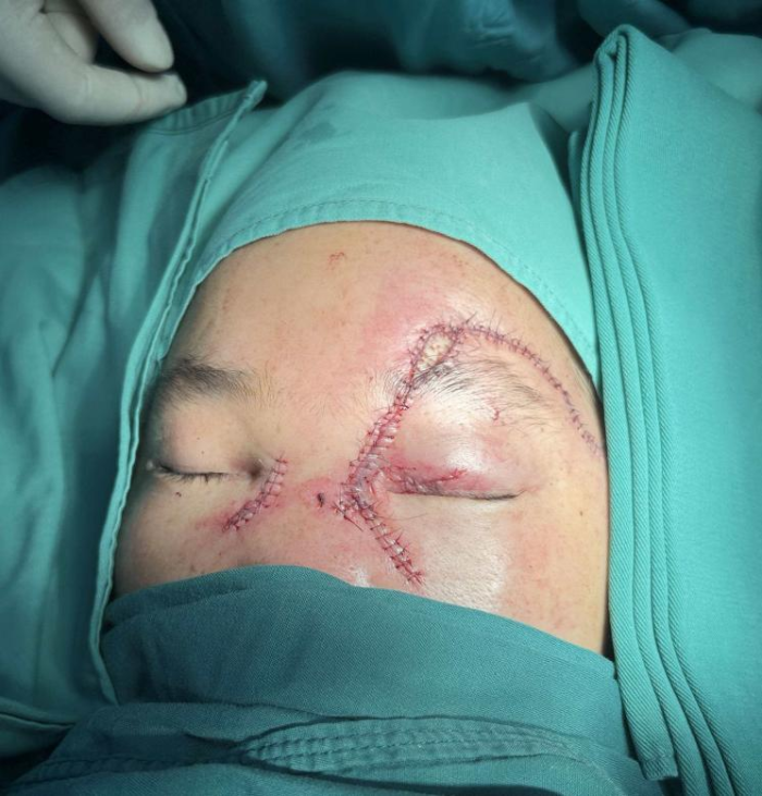 患者来到贵医大二院后,眼科姚元勋副主任医师立即牵头组建救治专班,启动眼外伤急诊救治预案。经快速查体,患者伤情触目惊心:左眼眼周皮肤严重撕脱伴眼睑移位、内眦韧带及泪小管断裂,确诊为左眼周皮肤重度裂伤。这样的伤情对医疗技术提出了极高的要求,眼周解剖结构精密,眼睑移位修复需在毫米间精准复位,既要确保术后眼睑闭合功能正常,避免眼球因暴露引发干燥、感染等二次损伤,又要通过精准对合减少瘢痕形成,保障面部外观的自然协调,每一步都如同在“方寸之间走钢丝”。
