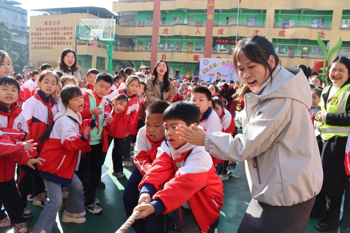 “加油!我们班赢了!”欢呼声此起彼伏,响彻校园。近日,天柱县第一小学校园里彩旗飘扬、锣鼓喧天,主题为“以体育铸牢中华民族共同体意识,以健康体魄赋能五育融合发展”的冬季运动会拉开帷幕。
