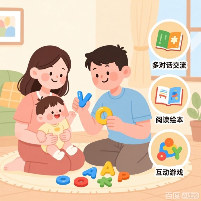1.打造“高密度语言互动”环境:日常做任何事都“边做边说”:喂饭时说“宝宝吃米饭,软软的”,穿衣时讲“穿蓝色外套,伸胳膊”,让宝宝沉浸式听语言;多提问、等回应:拿玩具时问“宝宝要小熊还是小车?”,哪怕宝宝用手势回应,也要及时强化“对啦,宝宝要小熊!”。