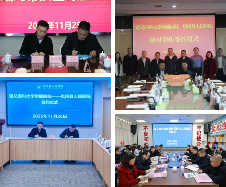 年来,遵义医科大学附属医院与四家县级医院建立了深厚的传统情谊和坚实的合作基础,形成了良性互动、协同发展的良好局面。面向未来,双方一致表示,将以此次签约为契机,赓续传统情谊,进一步拓展合作领域、创新协作机制、深化合作内涵,共同为推动健康中国建设和区域医疗卫生事业高质量发展注入新动能、作出新贡献。