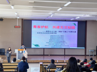 为营造无歧视的医疗环境,消除艾滋病、梅毒和乙肝母婴传播,迎接2025年12月1日第38个“世界艾滋病日”,广泛凝聚全社会力量,共同努力,创新防治策略,以达成终结艾滋病的目标,贵阳市白云区计生协与区卫健局、区医保局、区红十字会、区疾控中心、区妇保院、市彩艾阳光公益中心等多家单位于11月28日走进贵州商学院,以“社会共治,守正创新,终结艾滋”为主题,开展了“凝聚社会力量 消除艾滋病、梅毒和乙肝母婴传播宣讲活动”,此次活动共有100余名学生参加。