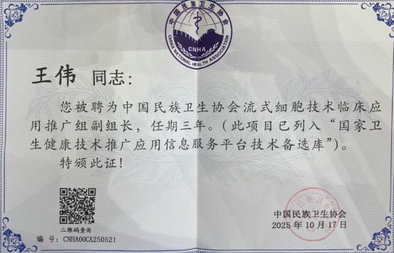 贵州医科大学附属肿瘤医院医学检验科主任王伟受聘为中国民族卫生协会流式细胞技术临床应用推广组副组长