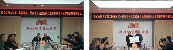 随后,遵义医科大学第二附属医院与思南县人民医院进行了签约,并进行了胸心血管外科专科联盟授牌。