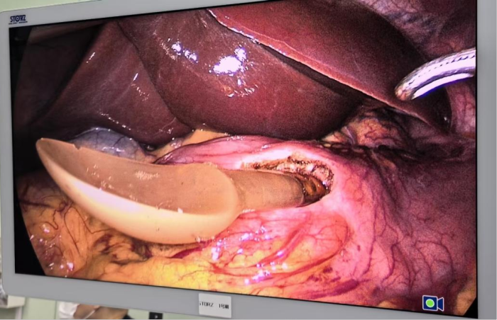 面对这一特殊病例,医院迅速启动多学科会诊。普外科、消化内科、麻醉科专家共同评估后,提出一致意见:腹腔镜胃切开异物取出术是当前最安全、最有效的方案。因汤匙太长且硬,无法通过十二指肠弯曲排出。与传统的开腹手术相比,腹腔镜手术仅需在腹部打几个小孔,具有创伤小、视野清晰、恢复快的明显优势。