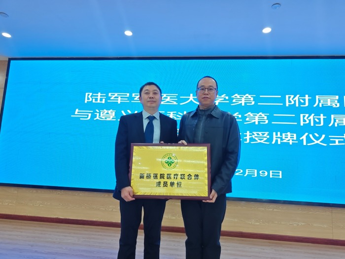 12月9日,陆军军医大学第二附属医院(新桥医院)与遵义医科大学第二附属医院医联体授牌仪式在遵义医科大学第二附属医院举行,标志着遵义医科大学第二附属医院正式成为陆军军医大学第二附属医院医联体成员单位并建立医联体合作关系。