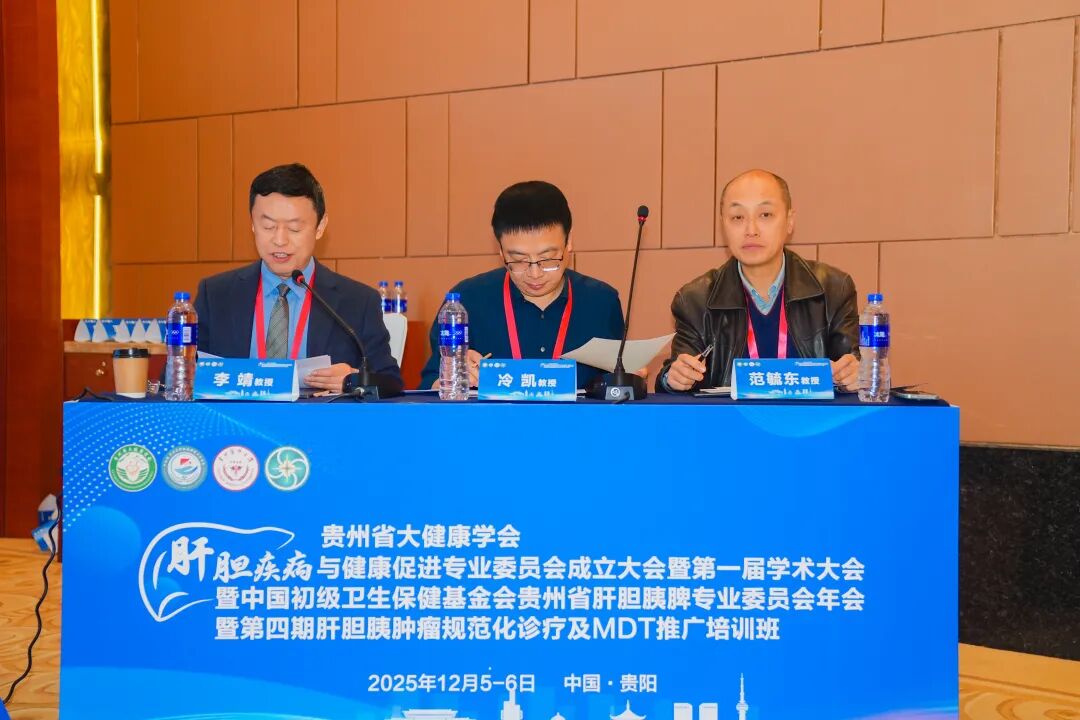 2025年12月5日至6日,由贵州省大健康学会主办,贵州医科大学附属肿瘤医院、中国初级卫生保健基金会贵州省肝胆胰脾专业委员会共同承办的“贵州省大健康学会肝胆疾病与健康促进专业委员会成立大会暨第一届学术大会暨中国初级卫生保健基金会贵州省肝胆胰脾专业委员会年会暨第四期肝胆胰肿瘤规范化诊疗及MDT推广培训班”在贵州贵阳圆满落幕。一系列紧扣肝胆胰脾疾病领域的前沿突破、临床实践、多学科协作与学科发展的学术交流活动,汇聚省内外医学专家与行业同仁,共同提升贵州省肝胆胰脾疾病的防治水平,为“健康贵州”建设注入强劲力量。