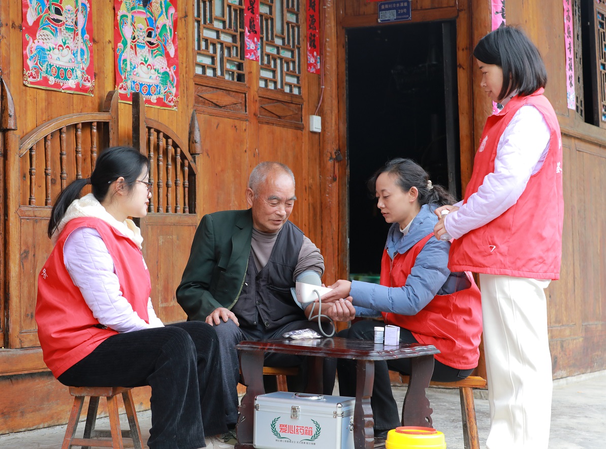 首页 > 新闻中心 > 卫生工作动态 > 正文 岑巩县:“守望朝夕”医疗志愿服务队 织密乡村健康网 来源:贵州健康报 时间:2025-12-11 浏览次数: 今年来,岑巩县思旸镇组织卫生院、村卫生室医护人员组建7支“守望朝夕”医疗志愿服务队,对辖区特殊儿童和65岁以上居家老人,开展免费送医、送检、健康咨询和用药指导等上门关爱服务,进一步提升乡村“一老一小”生活质量与健康保障。图为,思旸镇“守望朝夕”医疗志愿服务队,为盘街村居家老人检查身体。(本报通讯员 万再祥 黄鹄)编 辑:周 岩二 审:杜 明三 审:赵 亮 分享到: