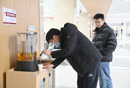 “路过这里看到有免费的养生茶,就接来喝了一杯,口感很不错。”12月9日,在中山一院贵州医院(贵医附院贵安院区)内科诊疗区,陪同家人就医的陈先生边喝茶边说道,“冬天来医院看病,喝上一杯温热的养生茶,感觉瞬间暖和了。医院对我们患者和家属真是用心了。”