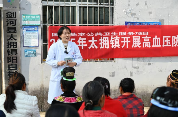 张晓凤在太拥镇阳白村为村民们宣讲高血压防治知识
