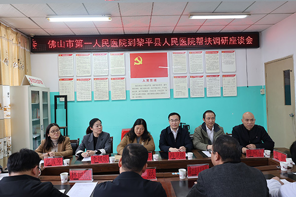 12月19日,佛山市第一人民医院党委书记甘绮霞一行8人,跨越山海来到黎平县人民医院召开帮扶调研座谈会,就党建协作、技术提升、服务提质等方面进行深入交流,推动两家医院形成“资源共享、优势互补、人才共育、共同进步”良好格局,惠及广大群众。