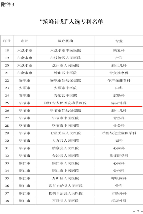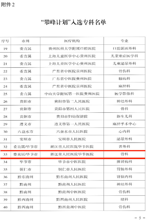 近日,贵州省卫生健康委员会、贵州省中医药管理局公布“942”计划分级打造临床重点专科入选名单公示,浙江省人民医院毕节医院(毕节市第一人民医院)(以下简称“浙毕医院”)普外科、骨科入选“攀峰计划”专科名单,泌尿外科入选“筑峰计划”专科名单。