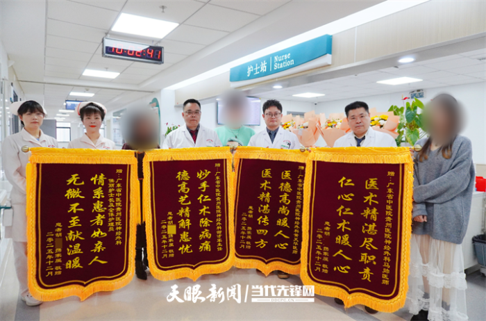 日前,胡先生已顺利出院。出院前,胡先生的家属满怀感激地为谢才军主任团队送上鲜花和锦旗。家属激动地表示:“我爸爸从入院时不省人事,到现在能听清我们说话、回应我们,效果特别好。真的庆幸第一时间选择了广东省中医院贵州医院,是医生们把他从鬼门关抢了回来,感谢全体医护人员的付出。”