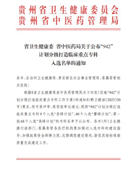 重磅捷报!5大专科入选建设名单 遵医附院“942”计划多点开花