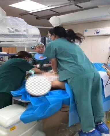 心血管内科一病区团队当即为患者实施介入手术,术中发现患者冠状血管闭塞严重,予行冠状动脉血栓抽吸术及支架置入术。术中患者出现反复室速,瞳孔散大、光反射消失等危险情况,生命体征濒临崩溃。医护团队不断采取胸外心脏按压心肺复苏、先后同步电复律等急救措施,经评估患者情况后紧急为患者行经皮主动脉球囊反搏(IABP)置入术+临时起搏器置入术。同时,ICU团队火速支援,为患者气管插管及呼吸机辅助通气等。手术完成后,将患者转入ICU加强监护和治疗。