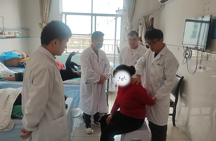 每天,我都跟这四个年轻人“泡”在一起。从肩周炎的评估到贴肌内效贴,从PNF技术到整脊手法,我们把“评估—计划—治疗—再评估”的流程一点点建起来。他们学得认真,经常下班了还拿着模型练。那天小杨眼睛发亮地跟我说:“张老师,今天我评估完才发现,那位病人问题主要出在胸椎,调了一下方案,他立马舒服多了!”那时候我就知道,我们来这儿,有意义。