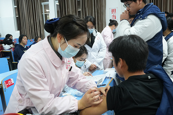 接种现场严格遵循“安全规范、有序高效”原则,医护人员仔细核对学生身份信息与疫苗信息,详细询问既往病史、过敏史及近期健康状况,确保每一位接种学生符合接种条件。针对部分学生接种前的紧张情绪,医护人员化身“暖心守护者”,用温柔的话语安抚鼓励,以娴熟规范的技术快速完成接种操作;学校老师全程协同配合,维持现场秩序、引导学生有序排队,工作人员在留观区逐一记录学生留观时间,耐心解答各类疑问。此次,累计为70余名师生接种流感疫苗,健康科普宣传100余人次。