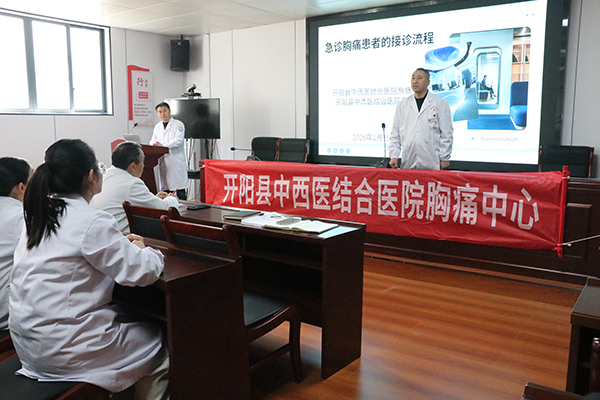 活动中,开阳县中西医结合医院急诊科主任、副主任医师杨毓云围绕《急诊胸痛患者的接诊流程》开展专题培训,系统讲解了胸痛患者的早期识别、分诊评估、快速转诊及规范处置等关键环节,结合临床案例强调了“时间就是生命”的急救理念。培训内容贴近基层实际,为花梨镇卫生院医护人员提供了科学、实用的技术指导。