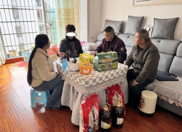 每到一户,慰问人员都要了解特殊家庭的生产生活心理状况,并送上大米、饵块粑、食用油等生活物资,切实缓解了部分家庭的经济压力。对长期患病的老人,慰问组还开展血压、血糖等常规诊断,了解他们的健康状况,并开展心理辅导,让他们真切感受到“难有人帮、心有人抚”的社会温度。
