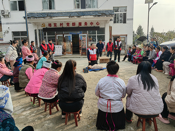 2026年1月14日,榕江县红十字会深入定威乡格览村、摆头村等边远山区农村开展应急救护技能培训活动。