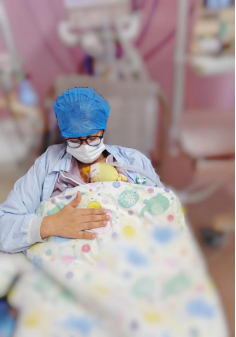 小蓝的父母均为巴基斯坦友人,父亲在贵州省某高校从事博士后研究,母亲便随他来到贵州。不料突发早产征兆,紧急入院。胎儿娩出的瞬间,既是喜悦的时刻,也意味着一场多重考验的开始——这是对医护人员的专业考验,更是对宝宝父母的心理考验。超低出生体重儿出生后需闯过呼吸关、体温调节关、感染关、喂养关等多重险隘。皮下脂肪仅为足月儿的三分之一,棕色脂肪储备几乎为零,胃容量仅3毫升,免疫球蛋白水平不足足月儿三成,任何微小疏忽都可能引发严重后果。面对这些重重困难,医护人员既要让宝宝父母充分理解,更要给予他们战胜挑战的信心。