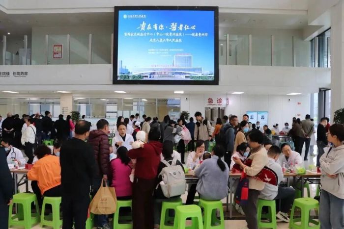 1月28日早上8点30分,中山大学附属第一医院贵州医院(贵医附院贵安院区)门诊大厅已人来人往。电子屏幕上,各个临床专科的专家名单滚动着——今天,他们将接诊超2000名患者。而在住院部,1111张病床使用率超过80%,空气里弥漫着忙碌而有序的生机。