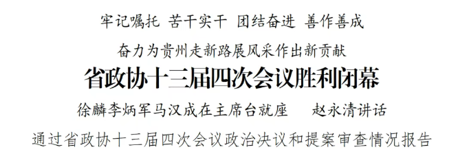 1月30日上午,中国人民政治协商会议第十三届贵州省委员会第四次会议在贵阳胜利闭幕。