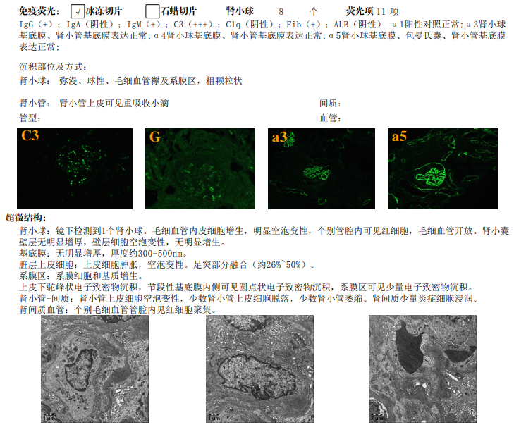 为明确病因,指导精准治疗,病情相对稳定后,在局部麻醉B超定位下,团队为小恩实施了肾穿刺活检。2天后肾脏病理回示:“新月体性肾小球肾炎”。这是一种以大量新月体形成为主要特点,临床表现为数日至数周内出现少尿、无尿和肾功能急剧下降的急进性肾小球肾炎。危害大、如不早期诊断,及时治疗,预后极差。