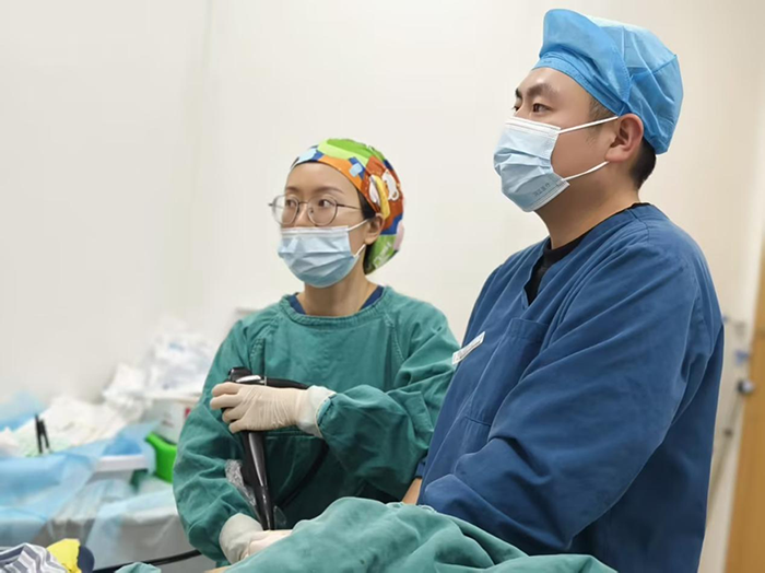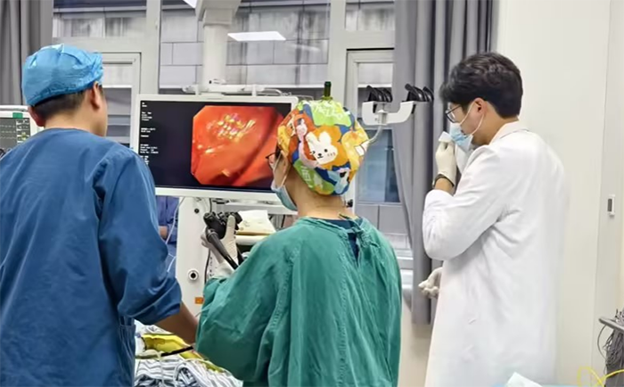 手术当日,诊疗团队各司其职、密切配合。麻醉科团队精准实施麻醉,全程严密监测患者生命体征;消化内科内镜中心医师刘娅琳凭借丰富经验与娴熟操作,操控小肠镜缓慢深入肠道,细致探查每一段肠管。经过耐心排查,最终在小肠深部发现明确活动性出血病灶,团队当机立断,在内镜直视下运用金属止血夹对出血点进行精准夹闭。