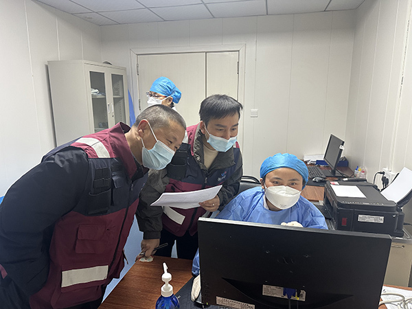 指导组通过实地考察、现场询问等方式,首先对预检分诊处的人员配备、个人防护用品、温度测量仪器、消毒物资进行查看,并询问医护人员对分诊流程的熟悉程度;其次在发热门诊查看隔离分区设置,救治设备等情况,医生对重点传染病定义的掌握情况;最后在检验科查看检测试剂有效期内及应急调配能力。针对发现的问题,指导组现场反馈并要求立即整改落实。